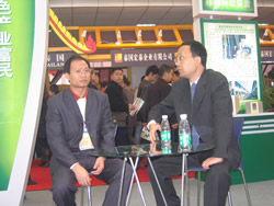 农业博览会上蒲江县副县长陈代康与蒲江县农发局副局长陈维新接受记者采访。 |