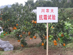 四川农大在合作社基地对晚熟杂柑进行越冬防冻试验. |