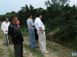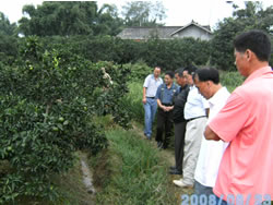 2008年8月23日合作社组织理事会成员参观调研副理事长罗廷万优质杂柑园的管理情况. |