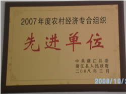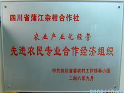 2008年9月合作社被中共四川省委农村工作小组评为"四川省农业产业化经营先进农民专业合作经济组织" |