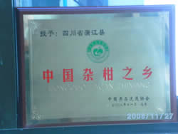 2008年11月23日蒲江县优质杂柑基地被中国果品流通协会授予“中国杂柑之乡”称号。 |