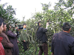 2007年4月4日合作社在成都市经济缓慢村蒲江县大兴镇米锅村展开春季杂柑管理技术培训会,到会人员达200多人,积极学习杂柑保花保果技术。 |