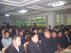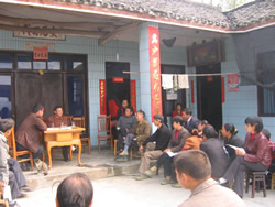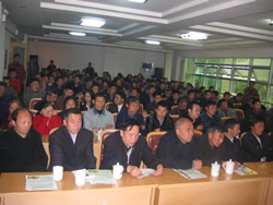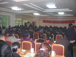 2007年4月26日合作社联合蒲江县关心下一代工作委员会特邀四川农业大学果树专家曾伟光教授(左下图中)在蒲江县仙鹤宾馆对社员进行题为:“杂柑抗旱保果,提高品质”的培训会。 |