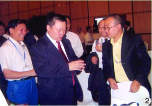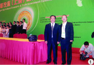 1、四川省水利厅厅长冷刚(左)在成都农业(上海)经贸投资洽谈会上与合作社理事长袁静秋合影. |