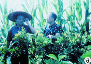 12、四川农业大学刘远鹏教授(右1)、曾伟光副教授(左1)、四川省科技厅农村处处长何永强(左2)视察合作社标准化示范基地. |